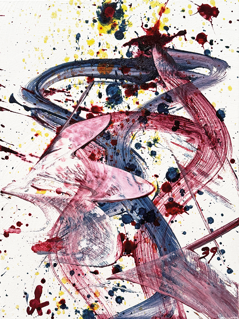 Seine aktuelle Schaffensreihe trägt den Titel „Symbiose“ und versinnbildlicht die Verbindung zwischen Menschen, Tieren und Kulturen. Die angewandte Schütt- und Spachteltechnik harmoniert perfekt mit der Malerei, und die auf dem Untergrund gesetzten feinen Strukturen verleihen den Arbeiten zusätzliche Tiefe und Plastizität.