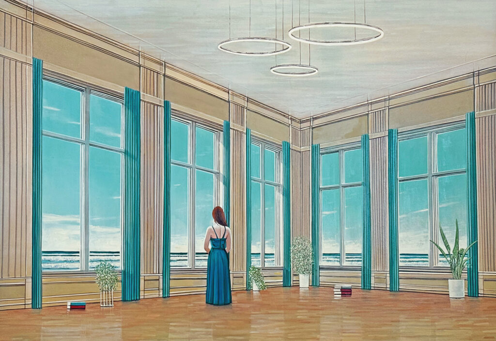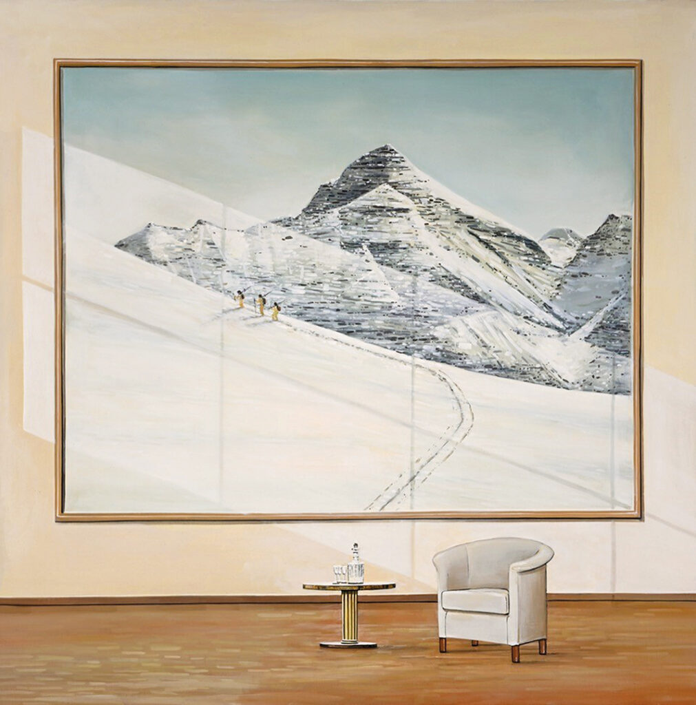 In 1986, he received an invitation from Ernst Fuchs to visit him in his villa in Vienna; Karl Korab also invited him to his studio in the Waldviertel region. The same year, Kitzmüller received a place in Wolfgang Hutter’s painting and graphic art masterclass at the University of Applied Arts in Vienna. As a student, he visited several European countries before travelling to England, where figurative art was becoming increasingly established thanks to Lucien Freud – a contrast to the abstract works that dominated Austrian art in the 1980s. In London, the young artist met British painter Stephen Taylor and spent a few months working with him in his London studio. In 1989 he returned to Vienna, where Wolfgang Hutter enabled him to graduate early with a diploma from the University of Applied Arts. Kitzmüller established a studio on his grandfather’s estate in Upper Austria, which would become the platform for his creative practice for many years.