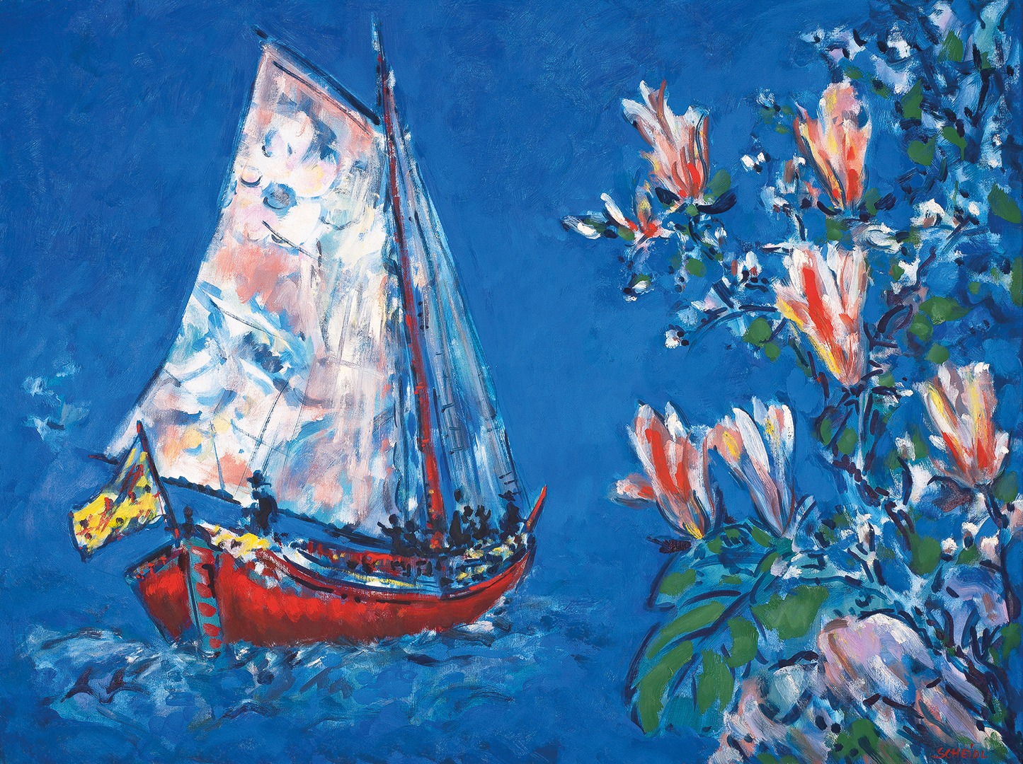 In his oil paintings, on the other hand, Scheidl follows in the European tradition, though his themes are mostly of a poetic and philosophical nature. Portraying movement and light, nature and space, the narrative and the abstract have long been central themes.