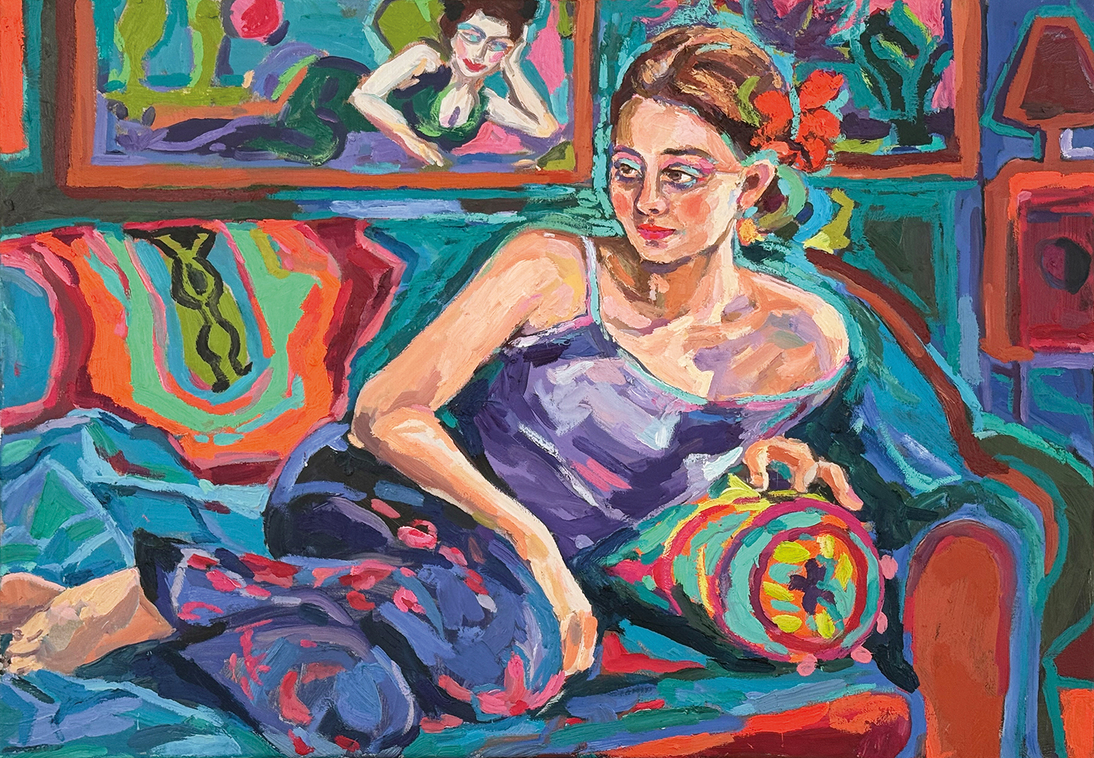 Despite this, there is a fundamental constancy in Makarová’s oeuvre, from her early works to her most recent creative phase: she consciously seeks out dialogue with the viewer, whether through direct eye contact by her mainly female subjects, or through their posture and body language. Aside from her incomparable colours, the aesthetic magic of which is in no doubt, Makarová’s great success as a painter lies in her ability to evoke emotions. It is no wonder that she has sold all her works of recent decades, and that they are now on display in significant public and private collections, such as that of the Austrian National Bank.